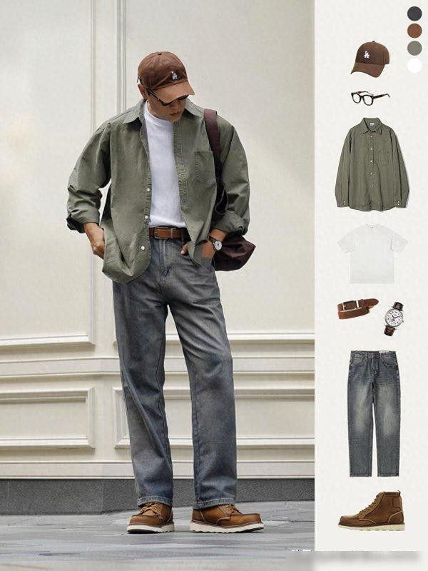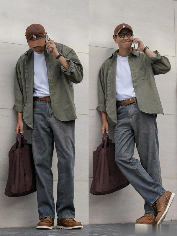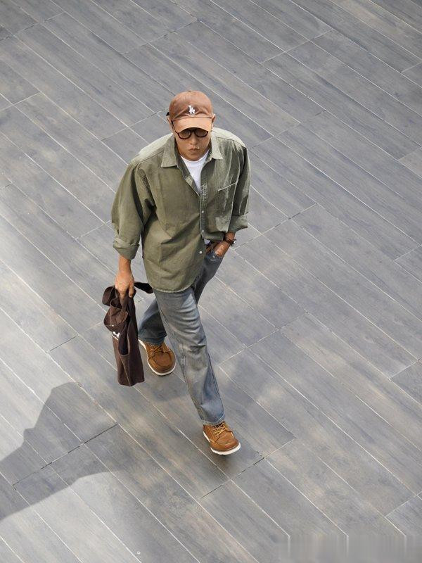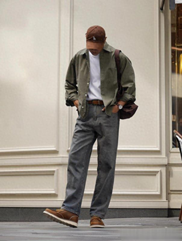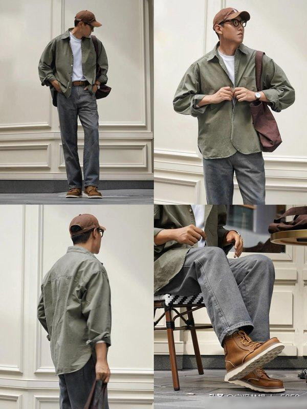还有人问:“我都40多了,穿工装会不会太装嫩?”其实工装风本来就是“实用”的代名词,和年龄无关。你看60岁的老爷子穿卡其工装裤+皮靴,反而比穿松垮运动裤显精神;40岁穿工装风,是“保持少年感”,不是“装嫩”——难道人到中年,就得穿得像“油腻大叔”?